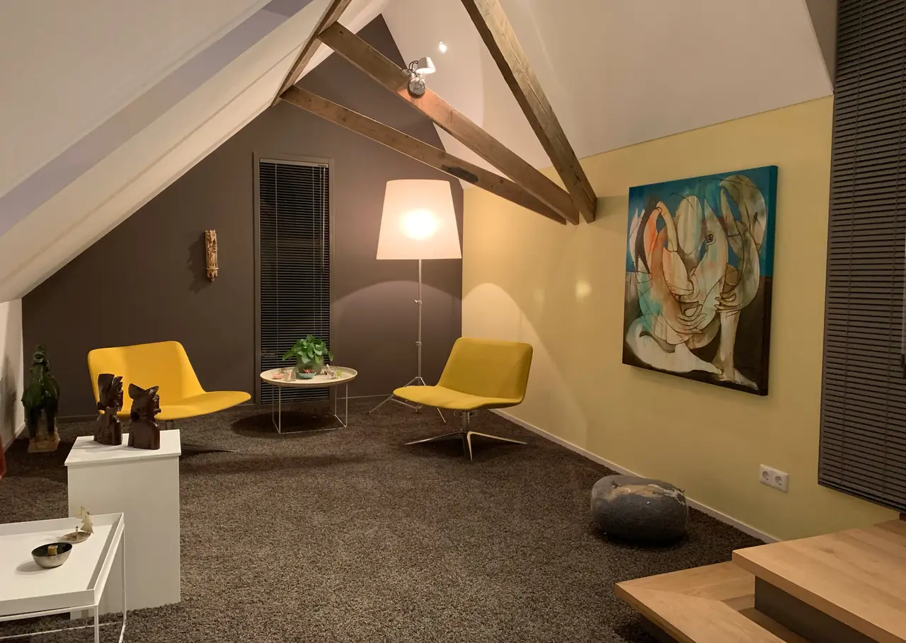 In the granary we have an attractive spacious flat (called In-de-graanschuur) for 2 persons. The apartment has its own toilet, bathroom, bedroom and kitchen, private entrance, garden, terrace with comfortable chairs and private parking.