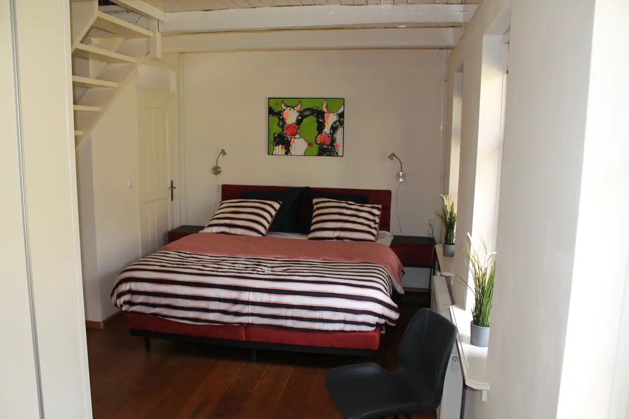 In deze slaapkamer zit tevens de trap naar de slaapzolder waar slaapmogelijkheden zijn voor twee extra personen.