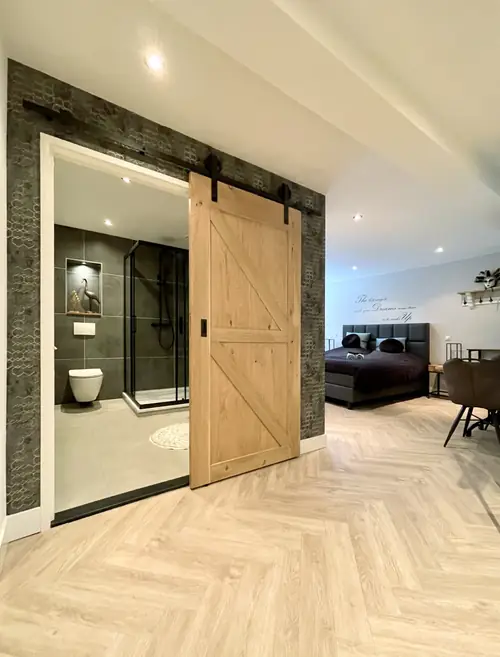 "Kamer West" offers an excellent double bed (180 x 200) and a private bathroom (rain shower) with toilet.