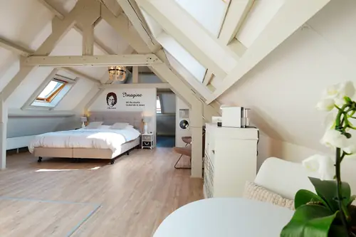 Met de restauratie van het huis is getracht de oorspronkelijke staat te behouden, dus houten vloeren die je soms hoort werken en niet de (geluids-) isolatie van een nieuwbouwwoning. De Lennon en Presley kamer met eigen badkamer, en twee kamers hebben eigen sanitair naast de kamer. Er is een eetruimte voor een zelfgemaakt ontbijt en om 's avonds een maaltijd te eten of een spelletje te doen. Er zijn koffie en thee faciliteiten (gratis) en een koelkast en magnetron aanwezig. Buiten is een terras ,deels overdekt, met zitjes en een grote tafel. De supermarkt en warme bakker zijn op loopafstand om je boodschappen te doen. Tegenover een café met terras, waar een gezellige sfeer en drukte heerst. Eetgelegenheden op loopafstand bereikbaar.