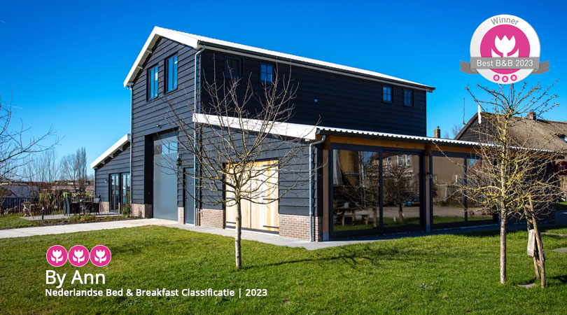 By Ann is dit jaar de onbetwiste winnaar in de categorie 3 tulpen. Je kunt hier kiezen uit vier landelijk ingerichte gastenkamers, die op de eerste etage van een nieuwe landbouwschuur zijn gerealiseerd. Op de begane grond vind je de sfeervolle ontbijtzaal, waar je ‘s ochtends kunt genieten van een heerlijk ontbijt met streekproducten. Als klap op de vuurpijl is er ook een fijne wellnessruimte aanwezig met onder meer een sauna, whirlpool en hot tub. Kortom: de ideale plek om tot rust te komen in de Alblasserwaard.