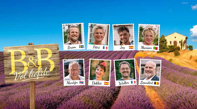 Vanaf 10 juli gaan acht verschillende B&B-eigenaren op zoek naar een nieuwe liefdespartner. Zullen Walter, Debbie, Bram, Petri, Martijn en Marian na de zomervakantie niet langer hun accommodaties alleen runnen? Ook maken we in B&B Vol Liefde 2023 kennis met Joy in het Spaanse Malaga en Leendert in het Belgische La-Roch-en-Ardenne. Stem dus elke werkdag je tv af op RTL4 en volg alle ontwikkelingen. En er is natuurlijk niets leukers om vervolgens te kiezen voor een onvergetelijk verblijf bij je favoriete B&B van dit seizoen!