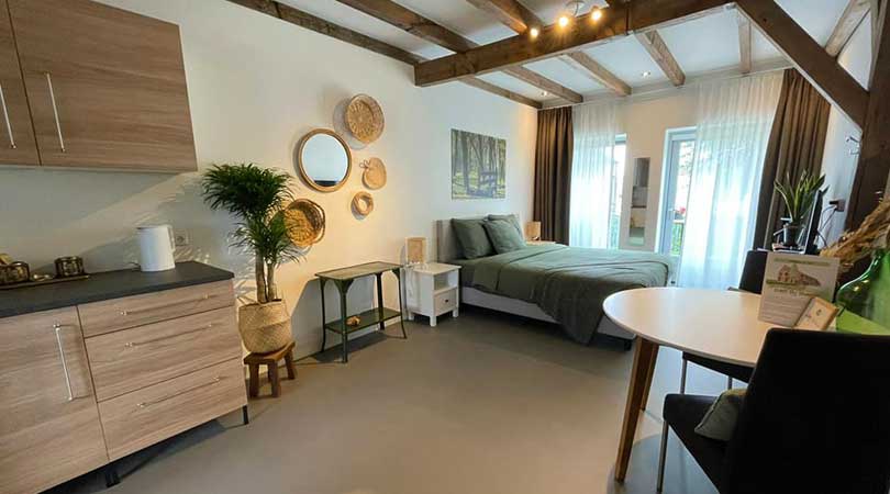Als je op zoek bent naar een stijlvol verblijf op de boerderij, dan is Bissems Hofstede een van de beste opties. Je overnacht hier in een sfeervol appartement dat is ondergebracht in een monumentale wagenschuur. Het gastenverblijf is van alle gemakken voorzien en biedt een schitterend uitzicht over de IJssel. Op verzoek geven de eigenaren je graag een rondleiding en op het erf mag je gerust de ligboxenstal binnenlopen, waar de melkkoeien gevoerd worden. Of bewonder de koeien van een afstandje, als ze ‘s zomers in het weiland grazen.