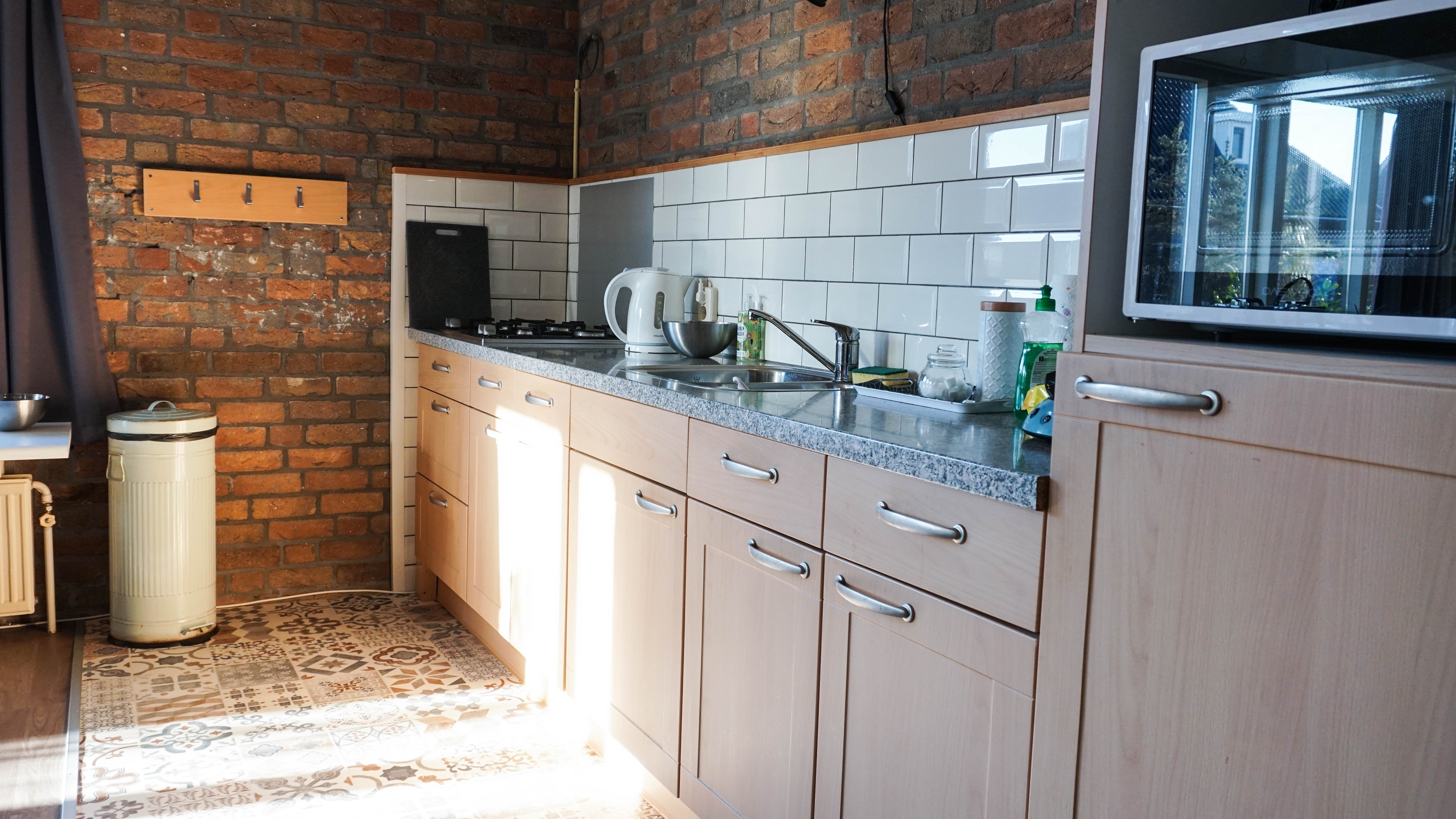- Eigen keuken (voorzien van gasfornuis, combi magnetron, koelkast, etc.).
